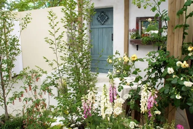・曲線デザインのアプローチ:柔らかな印象を与え、ナチュラルガーデンに最適。