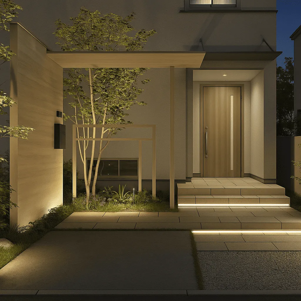 株式会社AI建では、これらの照明デザインを現地の状況・階段の勾配・周囲の環境光まで考慮して設計。無駄な明るさを避け、心地よく過ごせるライティングを提案しています。