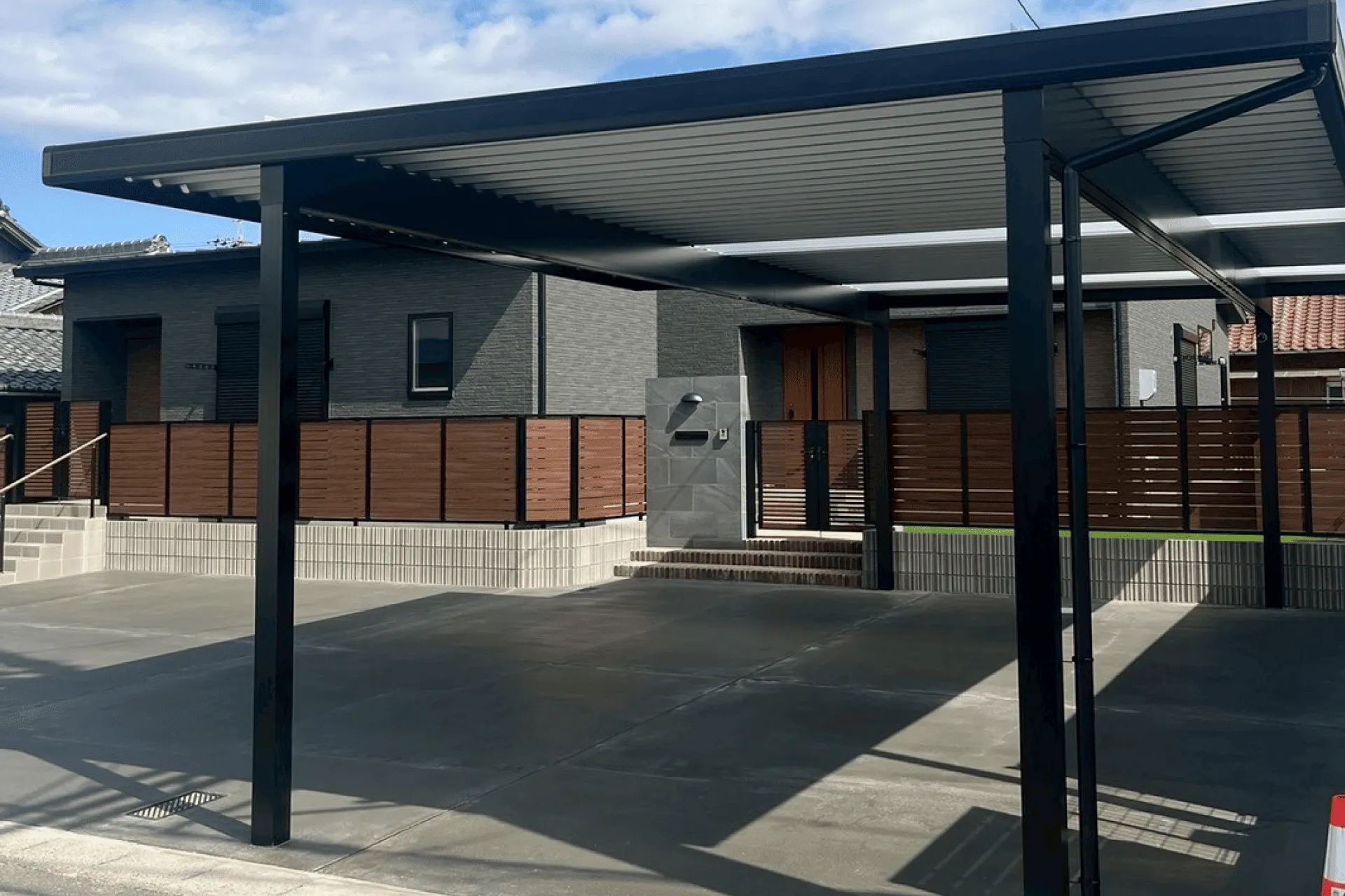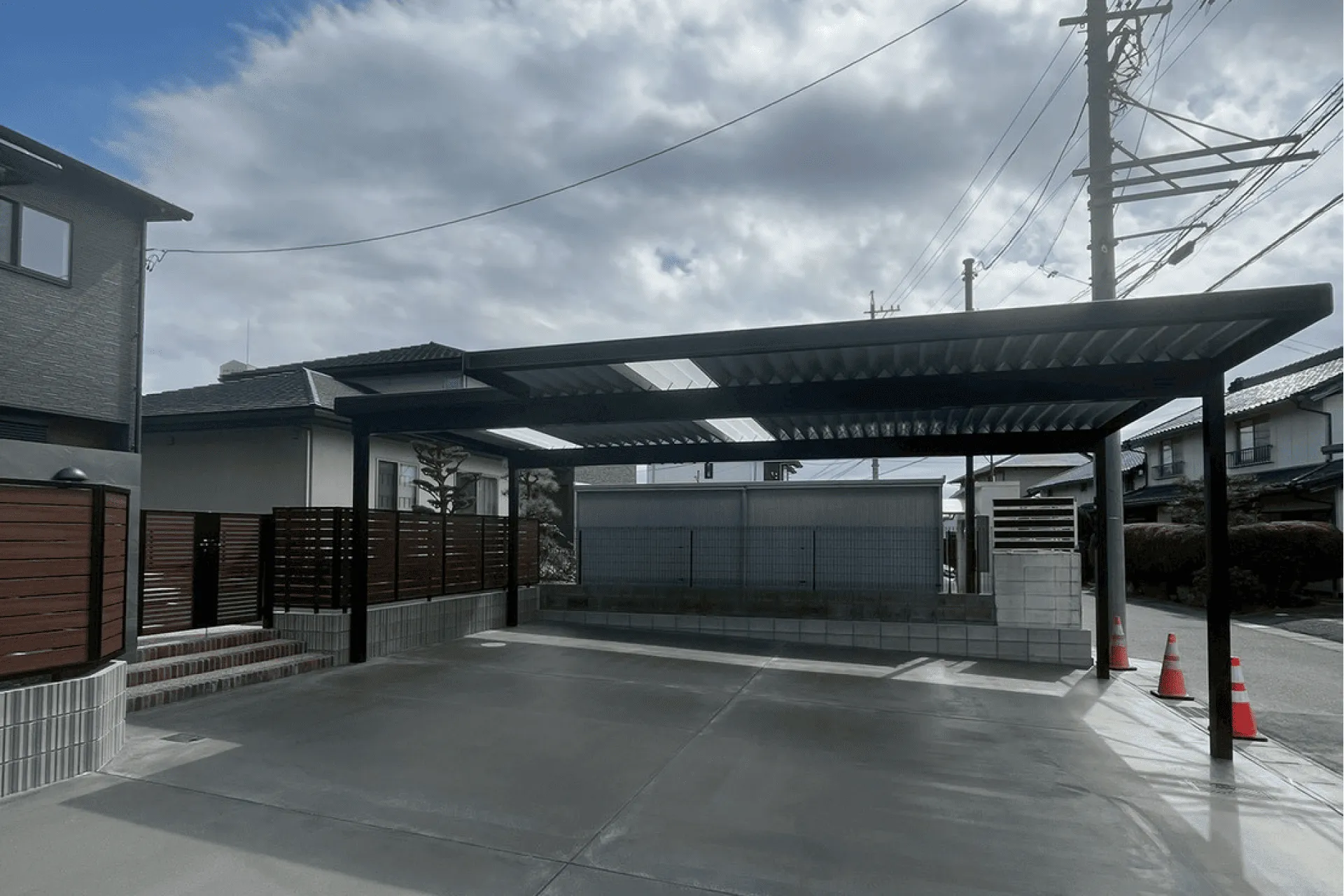 強靭な守りと美しい土間。自社施工で叶える、理想のガレージスペース。ここでは、大治町S様邸のトータル外構において、最も存在感を放つ駐車場とカーポートの施工詳細について解説します。ただ車を止めるだけでなく、地域特性(強風)への対策と、毎日の使いやすさを追求しました。